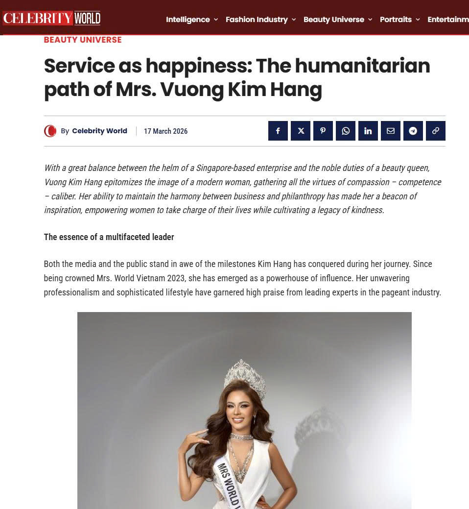 At KV Wellness, we believe that true quality speaks for itself, but it is always an honor when that voice is amplified by the world's most prestigious publications. The journey of Mrs. World Kelly Vuong and the evolution of KV Nest have recently captured the attention of international media, marking a significant milestone in our mission to redefine modern health.